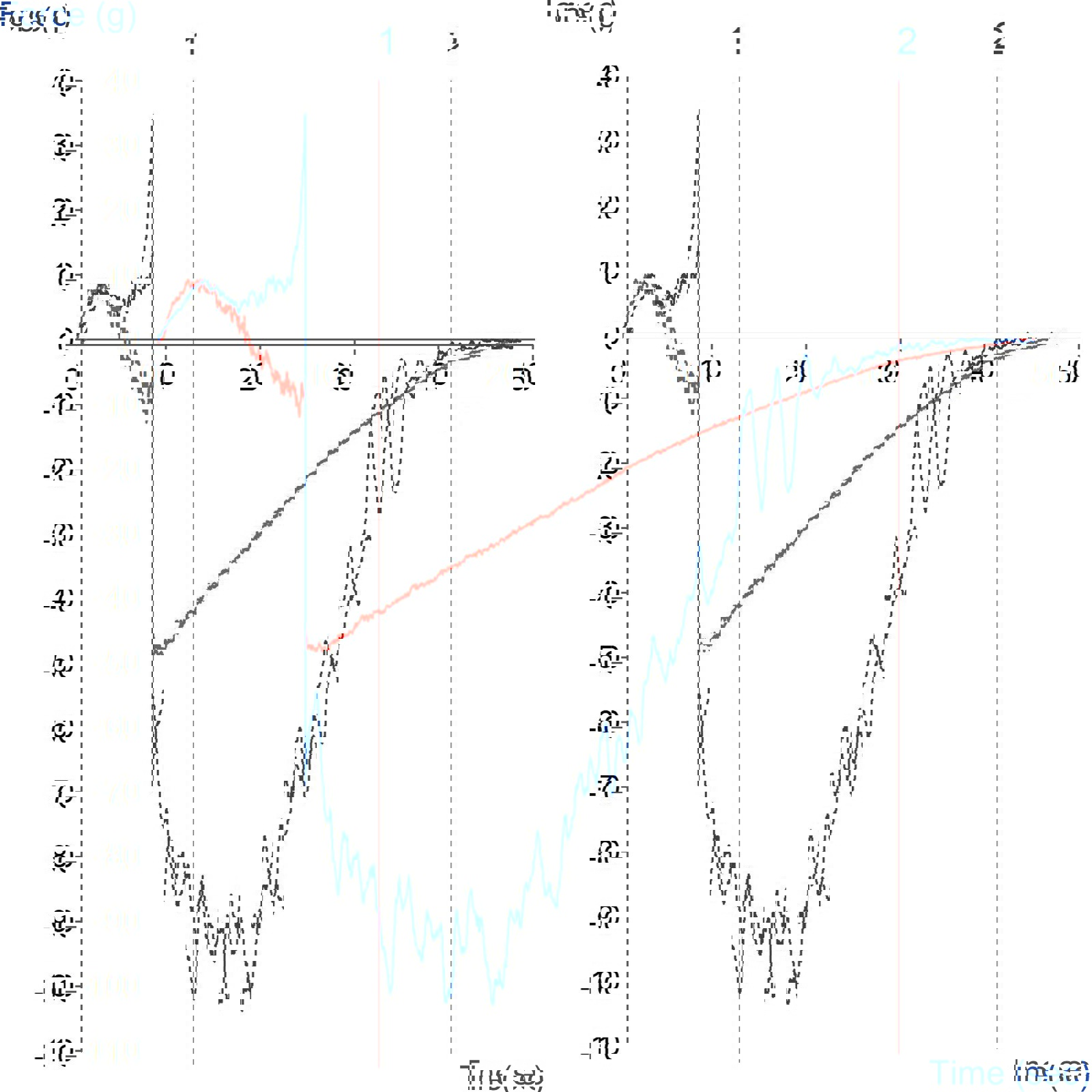 A more cohesive powder will cling to itself and to the blade therefore reducing the force exerted on the base of the vessel. This is shown in the plotted data by a large negative force.
