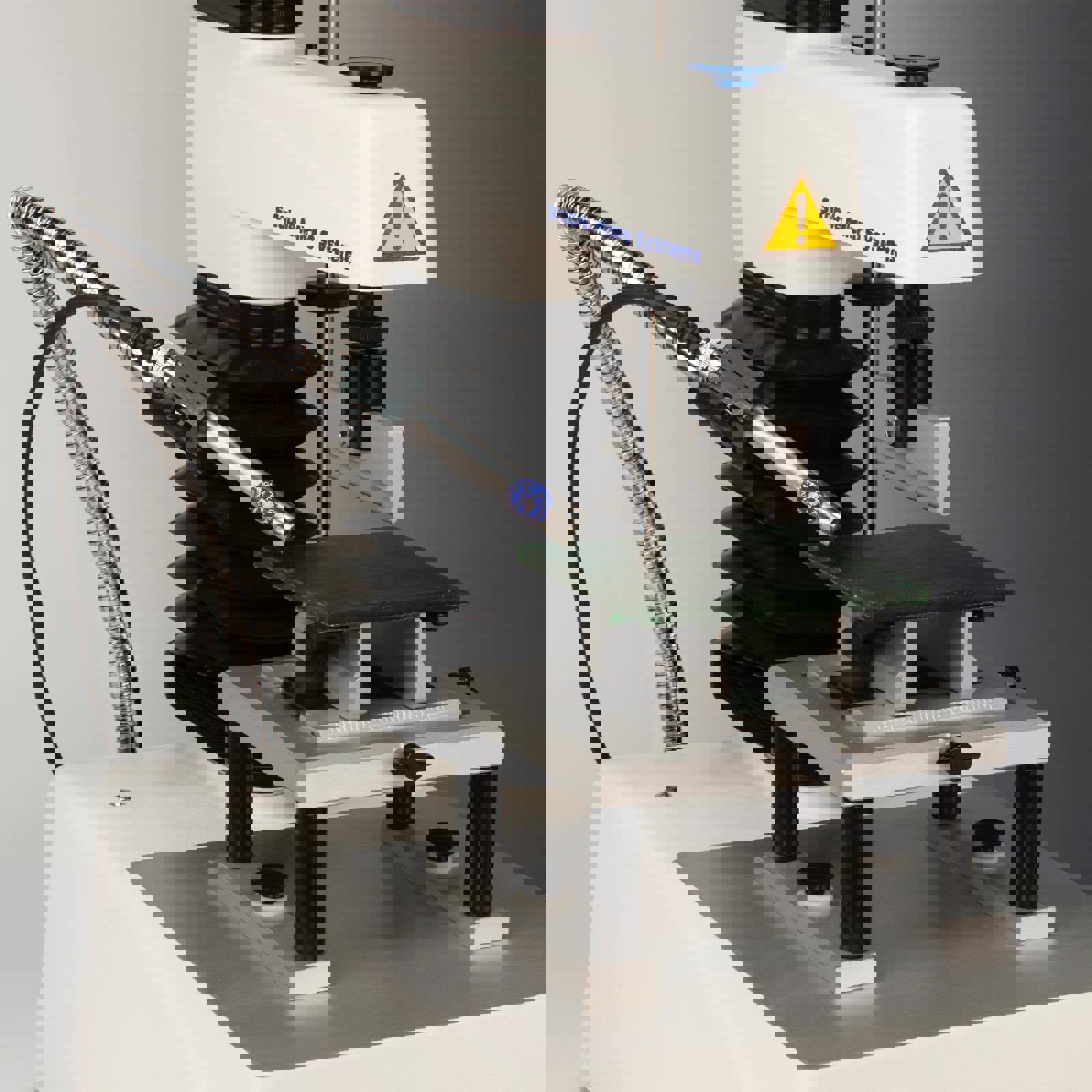 - A directional microphone, mounted close to the sample